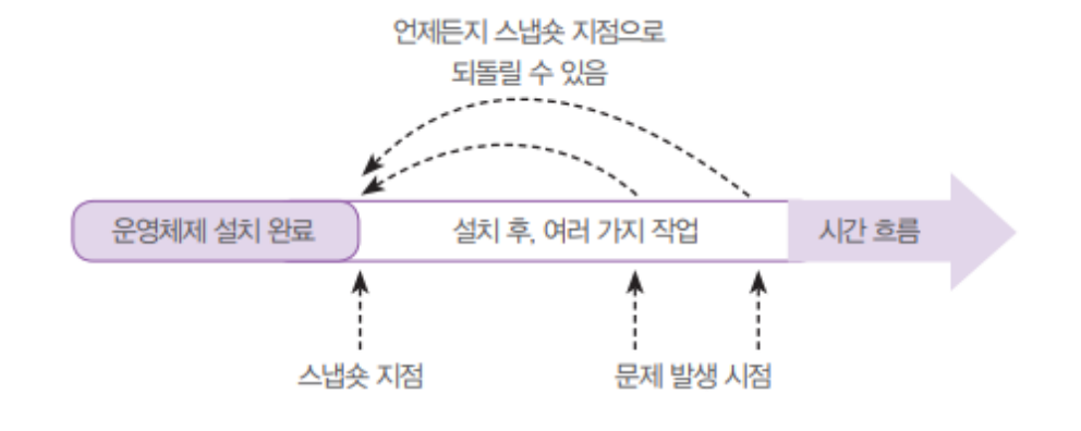 - 운영체제의 특정시점을 저장하는 스냅숏 기능을 사용할 수 있다.