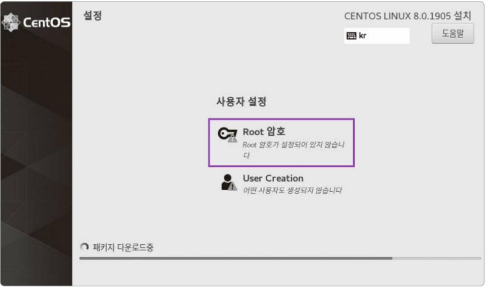 - 이후 설치를 진행하면서 root사용자 및 일반사용자를 생성해준다