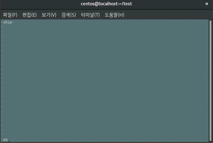 [root@localhost ~]# vi test // vi 파일명 입력 >> 명령모드로 vi에디터 진입
