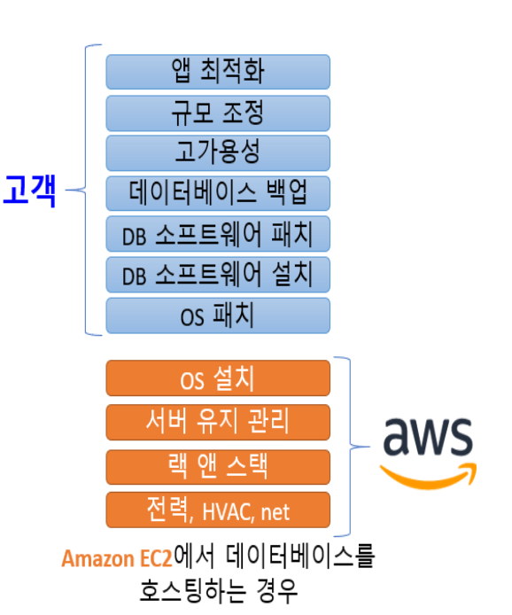 - 장비 운영, OS 설치 및 운영은 AWS가 담당하고, 데이터베이스 솔루션의 설치 및 운영은 사용자가 담당