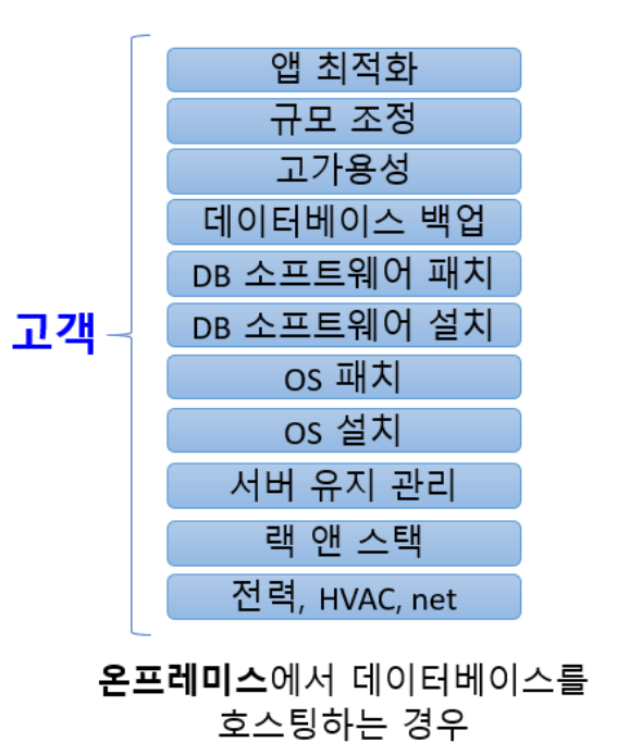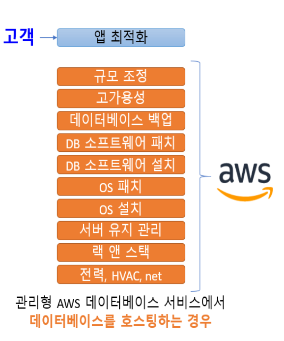 - 장비 운영, OS 설치 및 운영, 데이터베이스 솔루션 설치 및 운영까지 AWS에서 모두 담당