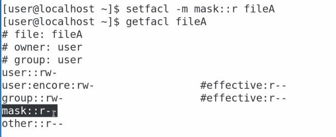 마스크가 현재 설정되어있는 ACL의 권한보다 적을경우 effective(실효권한)을 따로 표기해줌